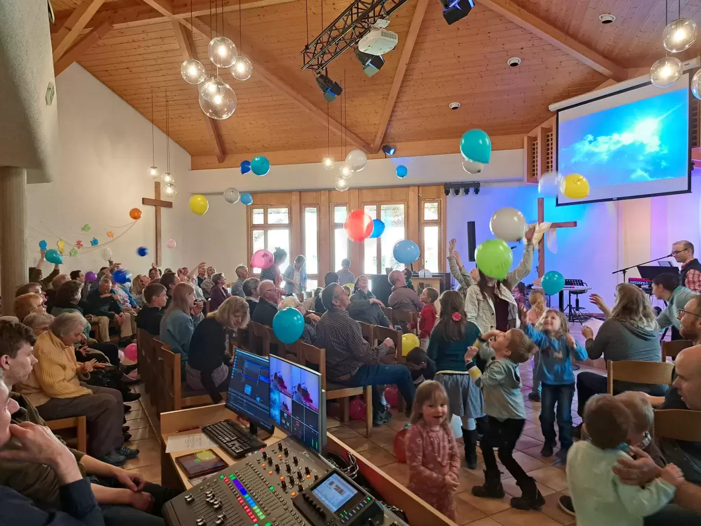 Auf ca. 80 Luftballons fanden viele Gründe zur Freude einen neuen Platz und wurden im ganzen Saal verteilt.