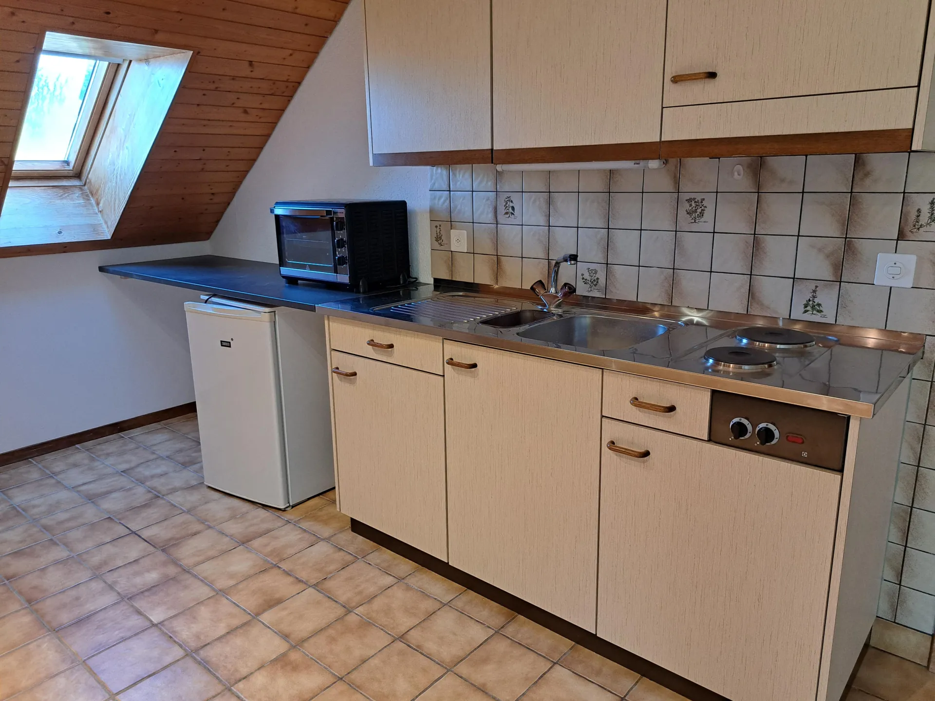 - kleiner Backofen und Kühlschrank sind vorhanden